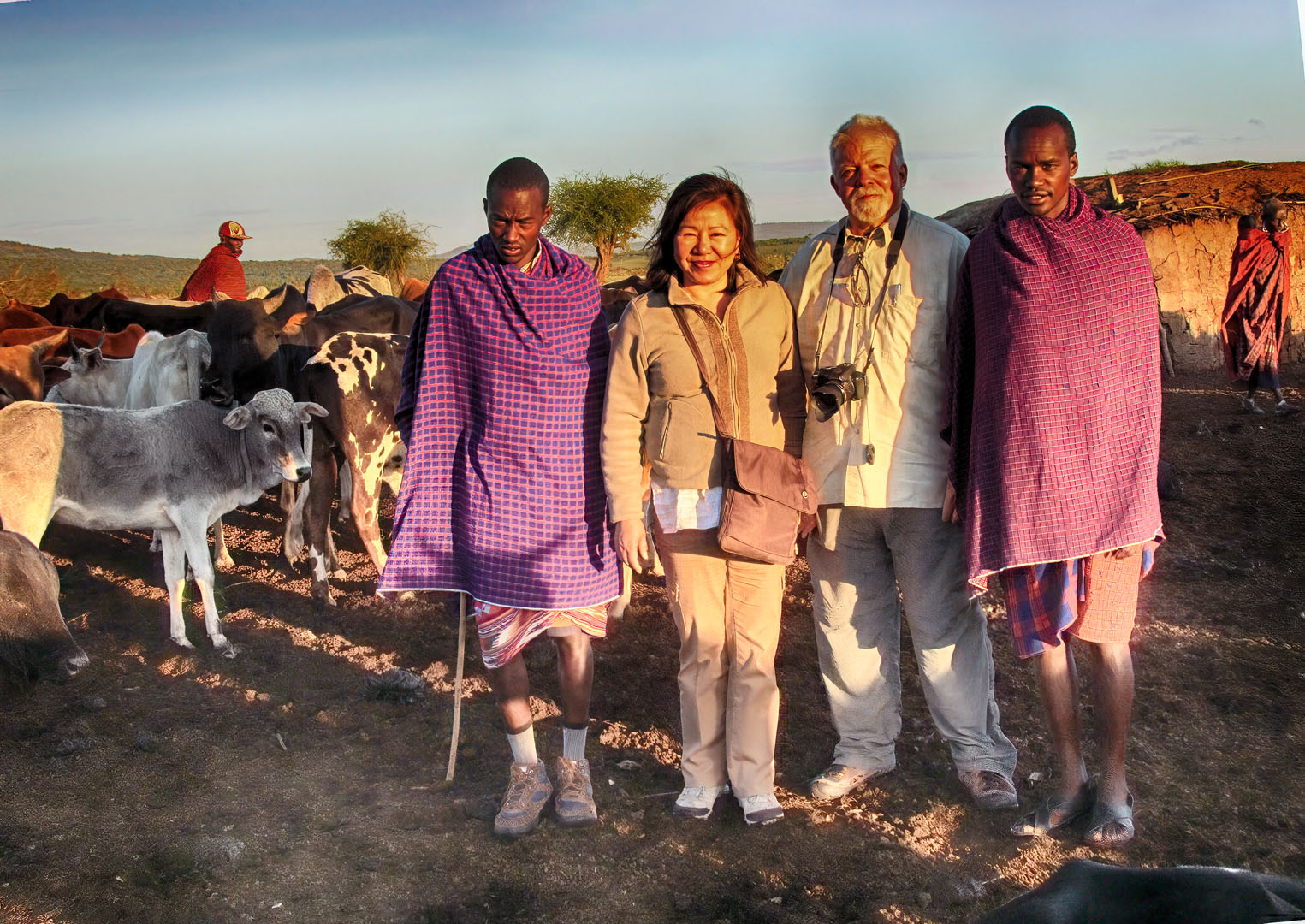 Jeff and Lisa with Maasai Warriors (Photo by Alex)
