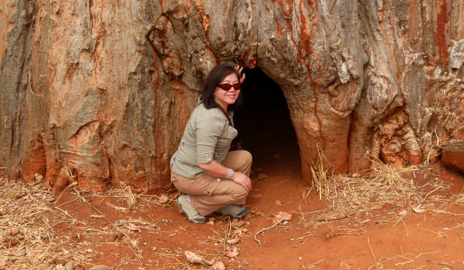 Lisa at Hollow Baobab Tree (Photo by Jeff Drake)