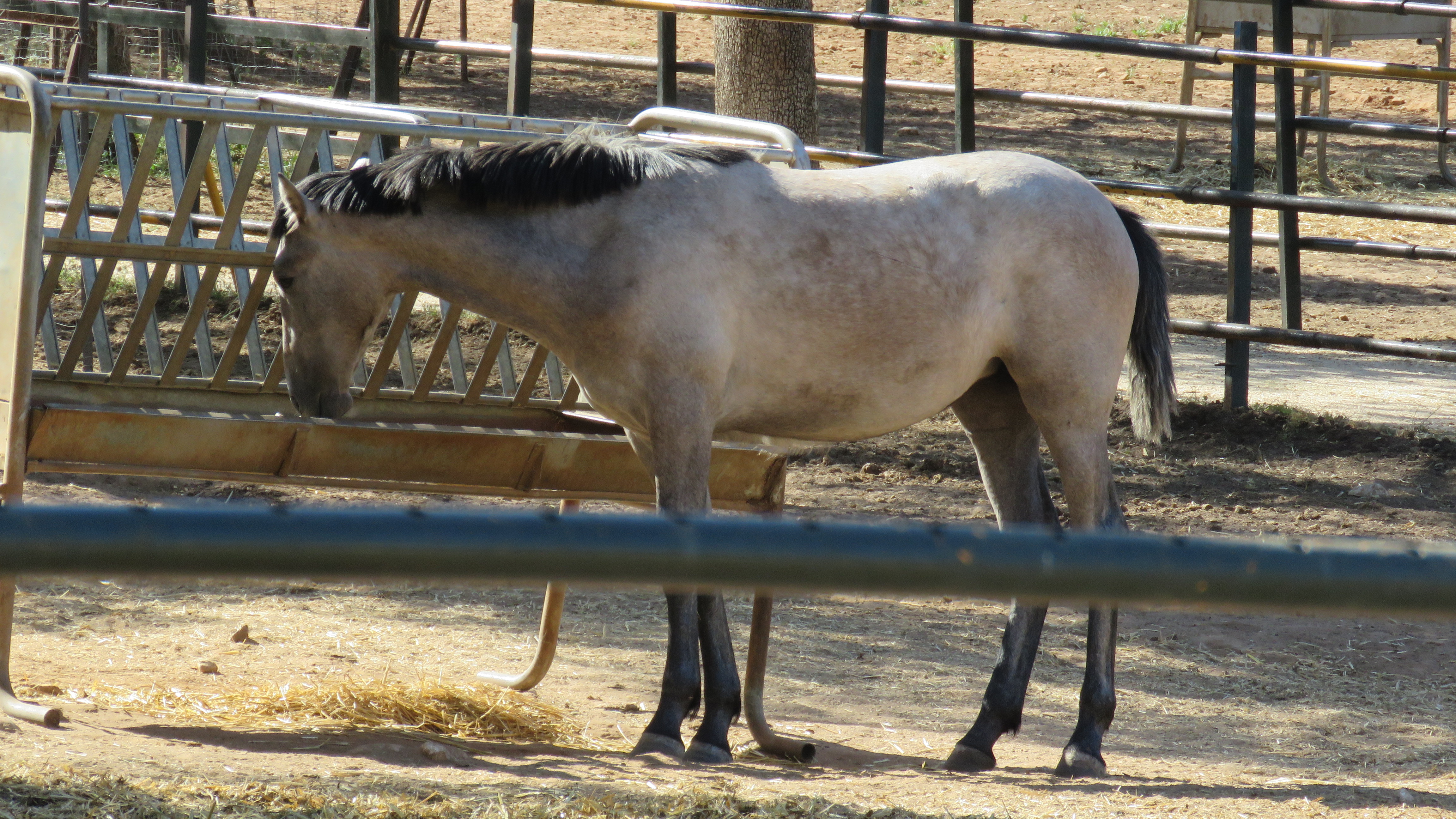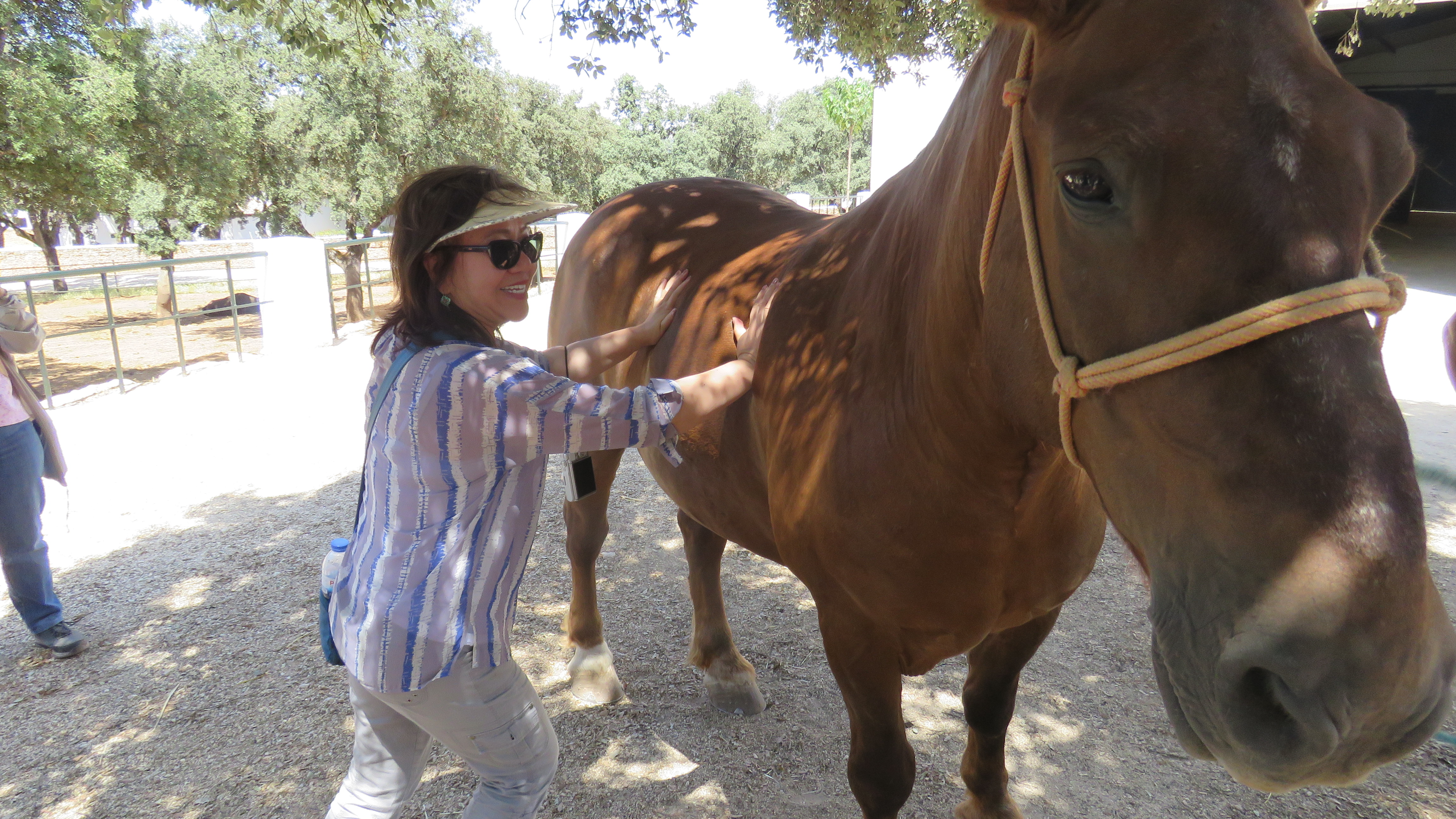 This horse was trained to resist being pushed over by the bulls. Lisa tried to push on him, but he somehow was able to resist. 🙂